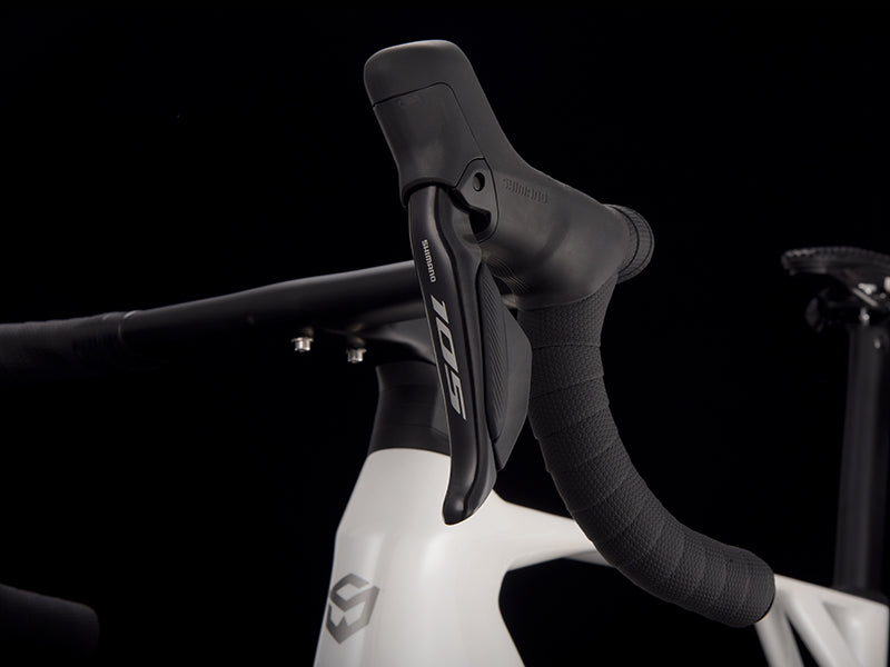 SHIMANO 105 hydraulic disc levers with Di2 shifting ensure precise, intuitive gear changes.Adjustable reach and custom buttons offeroptimal ergonomics.
